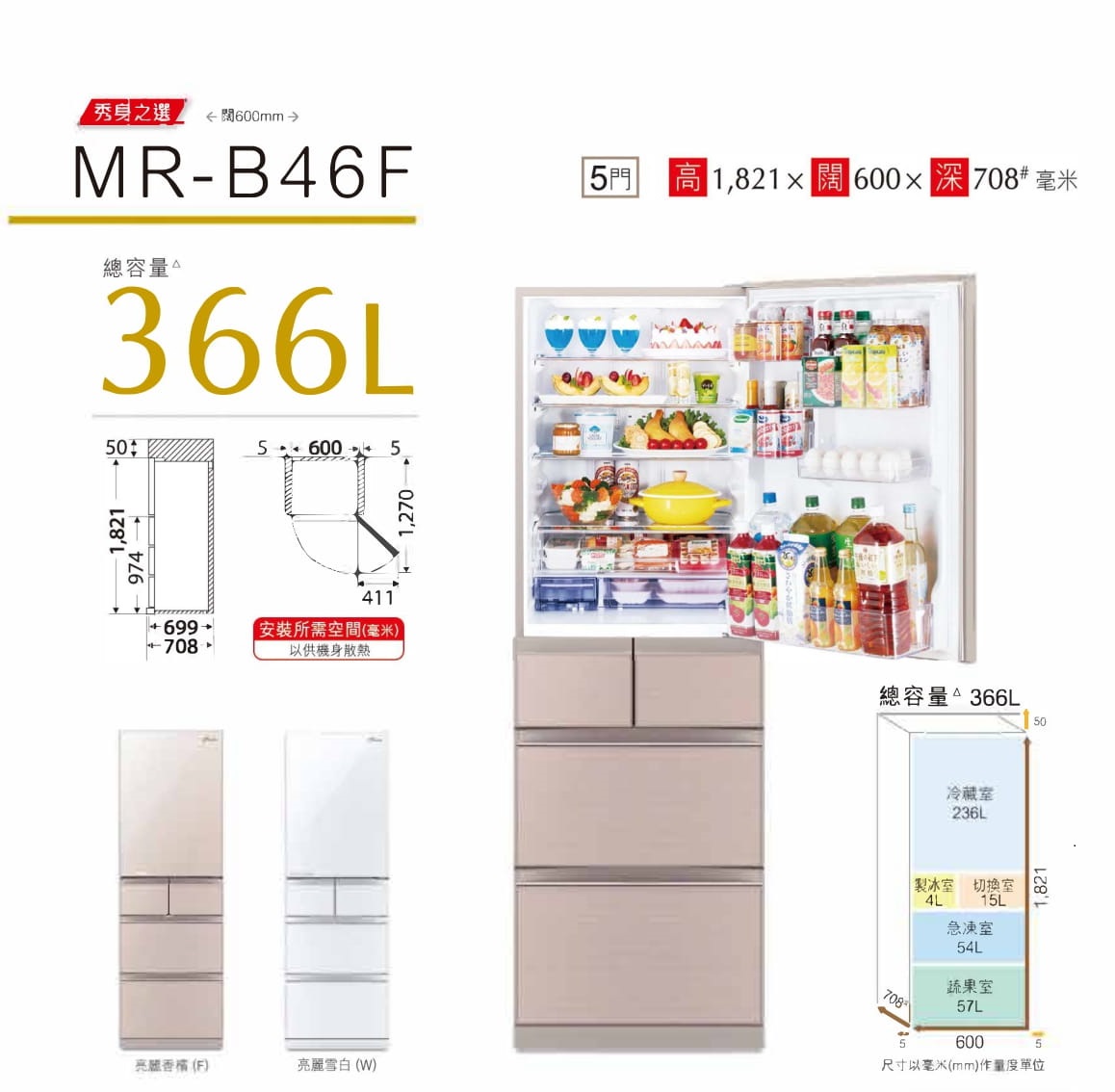 按以下按鈕新增 Mitsubishi 三菱 MR-B46F-F 366公升 多門雪櫃 (亮麗香檳) 到喜愛產品列表