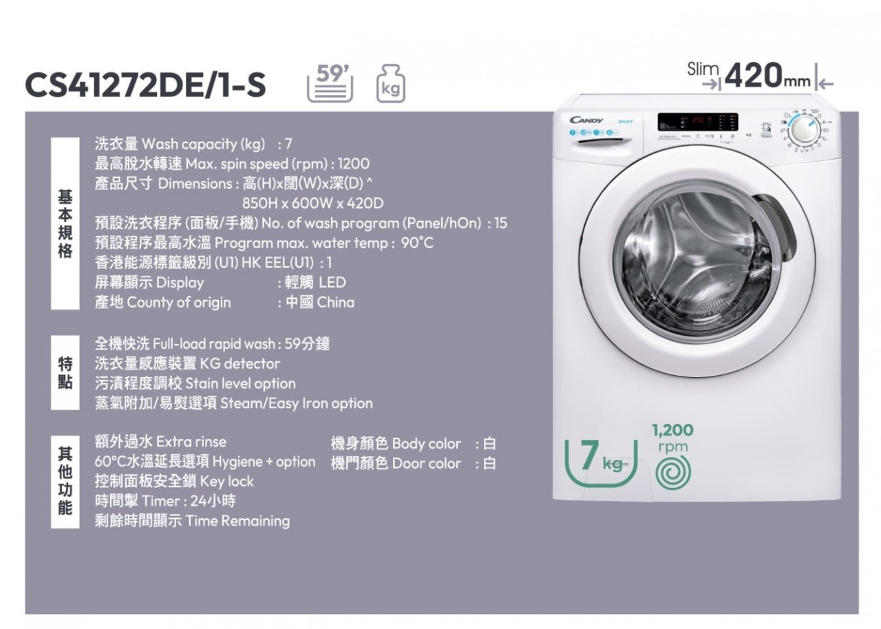 Click the button below to add the Candy CS41272DE/1-S 7kg 1200 rpm Washer to your wish list.