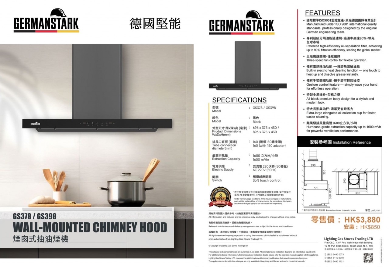 按以下按鈕新增 GERMANSTARK GS398 900mm 煙囪式抽油煙機 **請查詢優惠價** 到喜愛產品列表