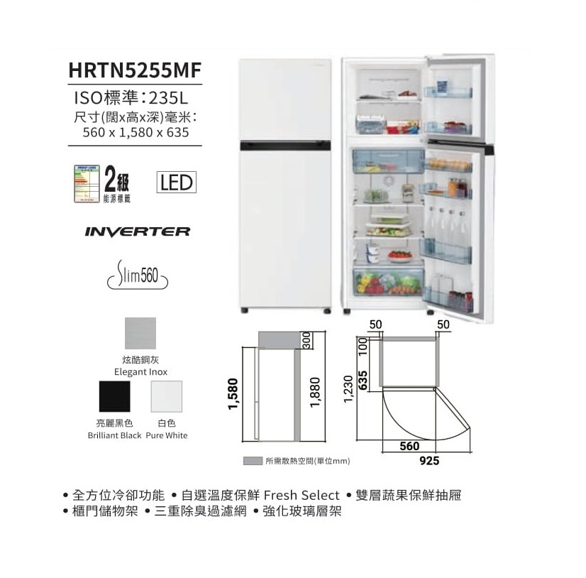 按以下按鈕新增 Hitachi 日立 HRTN5255MF 235公升變頻式雙門雪櫃 - 亮麗黑色/ 白色/ 炫酷鋼灰 到喜愛產品列表