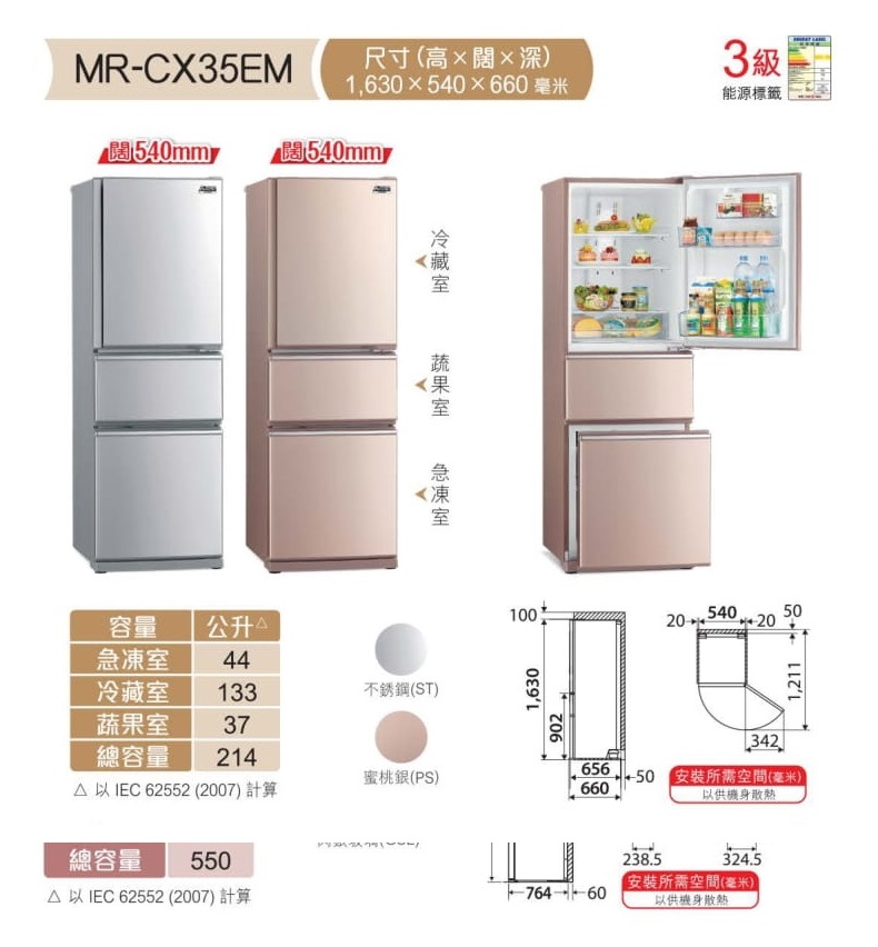 按以下按鈕新增 Mitsubishi 三菱電機 214公升 三門變頻無霜雪櫃 (不銹鋼 / 蜜桃銀) MR-CX35EM 到喜愛產品列表