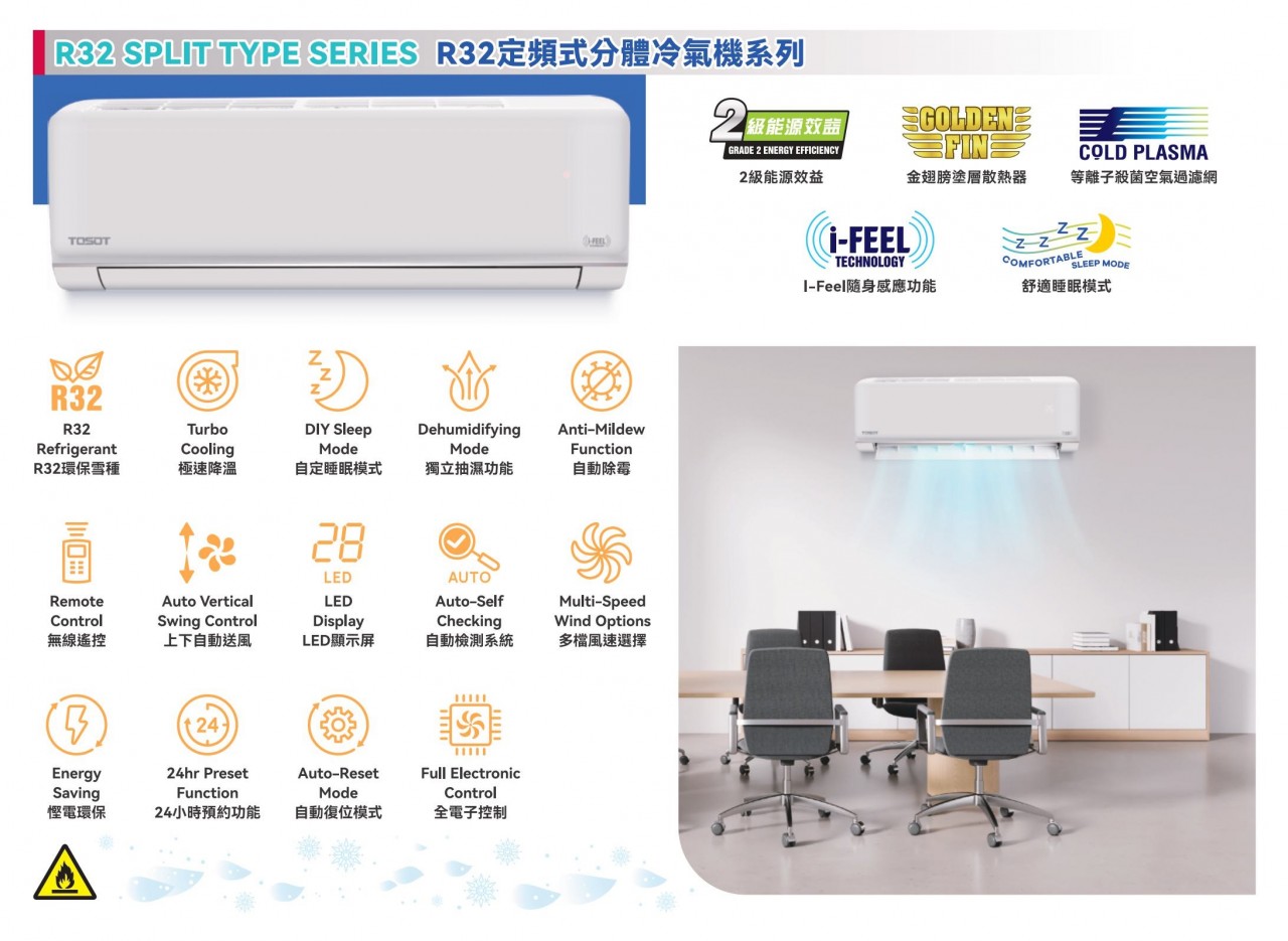 按以下按鈕新增 TOSOT 大松牌 2.5匹定頻掛牆式淨冷分體冷氣機機 - S24C5A (2級能源效益) 到喜愛產品列表